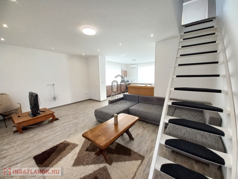 Új építésű könnyűszerkezetes mellékelépület, 75 nm mely 2 különálló lakrész kialakítására, vagy ütleti tevékenység folytatására is alkalmas.