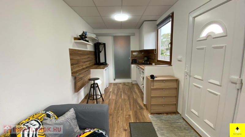 Ez az egység 12 x 2,4 méteres, kiváló állapotú, teljesen hőszigetelt lakókonténer, amely nappali-konyha, hálószoba és fürdőszoba funkciókat foglal magába. Korszerű klímával fűthető és hűthető, 3 fázisú áramellátással rendelkezik, külön betáplálás van napelemhez, így akár szigetelemű napelemrendszerről is működtethető. A napelem telepítéshez a szolgáltató által előírt 3 X 16 Amper rendelkezésre áll, amely az új kiépítés műszaki paramétereinek megfelelően 3x32 Amperig átalakítás nélkül bővíthető. Ideális akár állandó lakhatásra, akár irodának.