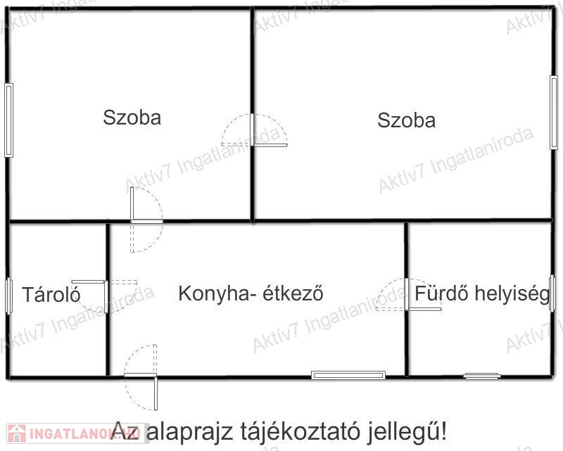 - kb 64 nm-es, 2 szoba, konyha, fürdő helyiség, és egy tároló kapott helyet,