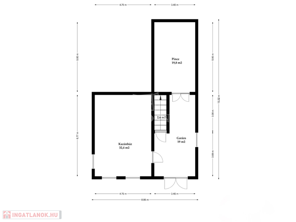 A ház 1987-ben épült sóskúti kő (pince) és szilikát tégla falazóelemekből, cserépfedéssel. Az épület szerkezete stabil, falai szárazak. A fűtést Ariston gázkazán, illetve vegyestüzelésű kazán és kandalló is biztosítja, a melegvizet villanybojler szolgáltatja. Egyfázisú áramhálózat mellett vezérelt áram (éjszakai) is rendelkezésre áll.