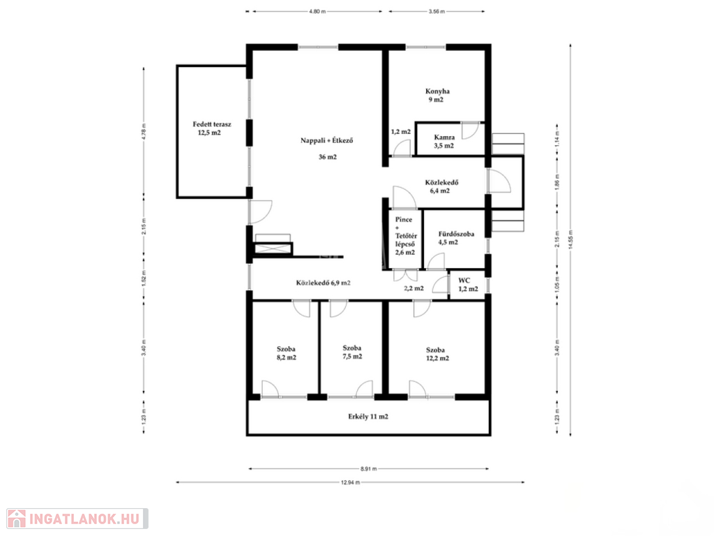 3. szint (65 m2) beépíthető tetőtér, ablakokkal és szigeteléssel a tető alatt