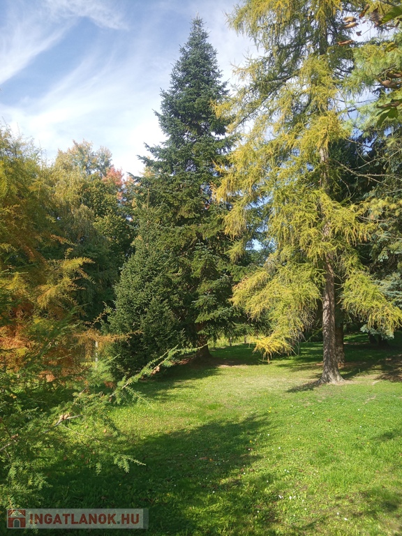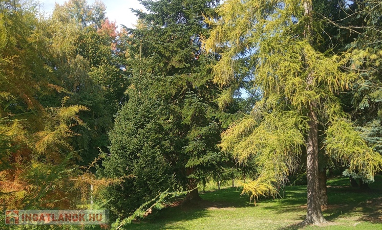 - Parkos, közel 1700 m²-es telek: A 1692 m²-es kert igazi zöld oázis: felnőtt fenyők, tuják, ciprusok és gyümölcsfák adják meg az udvar hangulatát. A nagy fák természetes árnyékot és intim, nyugodt környezetet biztosítanak.