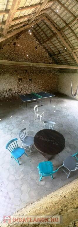 Kőpajta (130 m² + emelet + tetőtér): Részben elkészült, jelenleg közösségi tér, pingpongterem, grillkonyha, egyedi hatszögletű padlóval. Óriási potenciál: akár wellness részleg, további 8 vendégszoba, vagy közösségi tér.