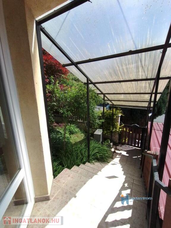 Elhelyezkedése: Belterület Tájolása: Déli tájolású Állapota: Kiváló Komfort besorolása: Dupla komfortos Építési éve: 1997 Alapterülete: 120 m2 Telekterülete: 575 m2 Szobák száma: 4szoba Felújított: Felújított Felújítás éve: 1998 Felújítás során elvégzett munkák: Villanyrendszer csere, Vízrendszer csere, Fűtésrendszer csere, Csempe csere, Járólap csere, Parketta csere, Tetőszigetelés, Nyílászárók cseréje, Hőszigetelt nyílászárók beépítése Közművek: Gáz, Víz, Villany, Csatorna Gázellátás: Vezetékes Vízellátás: Vezetékes víz Melegvíz-ellátás: Gázkazán Áramellátás: 230V Fűtés módja: Gáz, Fa Fűtés típusa: Cirkó, Kandalló Homlokzat állapot: Nívós Építési mód: Tégla Tető formája: Magas Tető anyaga: Cserép Parkolási lehetőség: Garázsban, Utcán, Telken Kilátás: Utcafronti kilátás, Udvari kilátás, Hegyi panoráma, Parkra nyíló kilátás Napelem: Nincs Jellemzői: Alacsony rezsi, Csendes környék, Jó közlekedés, Két bejárat, Étkező, Udvari terasz, Amerikai konyha, Beépített konyhabútor, Autóbeálló, Kert, Kerítés, Parketta burkolat, Egyedi vízóra , Térkő, Zöldterület, Jó közbiztonság, Beépített tetőtér Energetikai besorolás: Nincs adat Egyéb jellemzők: Erkély, Terasz, Melléképület, Pince, Tetőtér Tv, Internet: Kábeltévé, Internet, Vezetékes telefon Közelben: Iskola, Óvoda, Vasútállomás, Autóbuszállomás, Orvosi rendelő, Bolt, Gyógyszertár, Postahivatal, Vendéglátó egység, Autópálya Rezsi költség(Ft): 40000 Terhelések: Tehermentes ingatlan