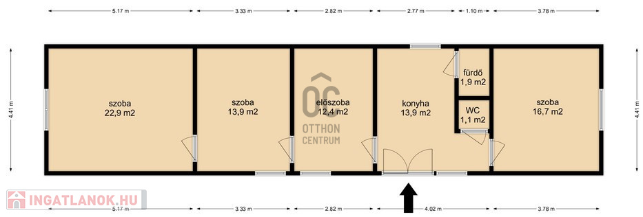 - 3 szoba, előszoba, konyha, fürdő, WC helyiségek lettek kialakítva,