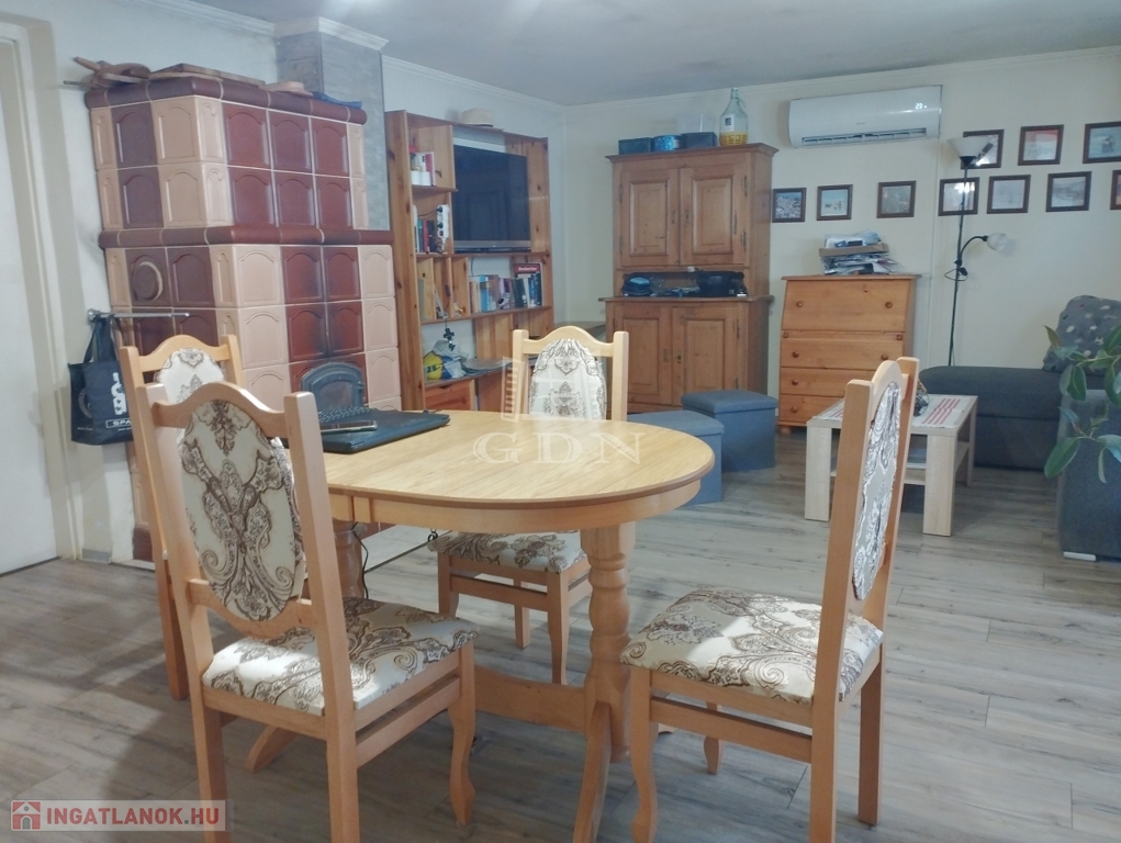 Egy teljesen körbekerített, 1000 m²-es telken található ez a gondozott állapotú ház, amely 90 m² lakóterülettel rendelkezik, csendes utcában, kellemes lakókörnyezetben.