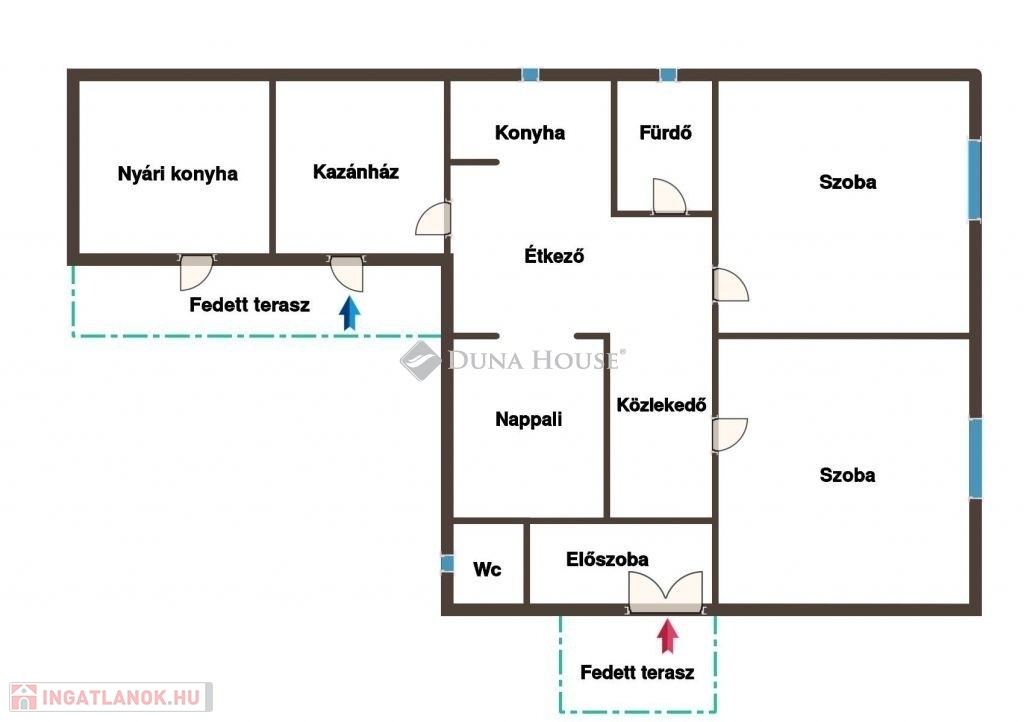 A nyári konyhát - egy ajtó beépítésével a válaszfalba - könnyedén a lakótérbe lehet vonni és egy szobával többet tudunk kihozni az ingatlanból.