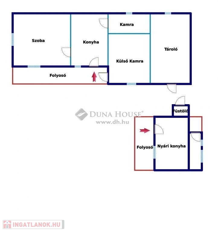 egy tágas szoba, konyha, kisebb kamra, valamint egy nagyobb helyiség található benne, amely akár egy újabb szobává is átalakítható a szükségletek szerint.
