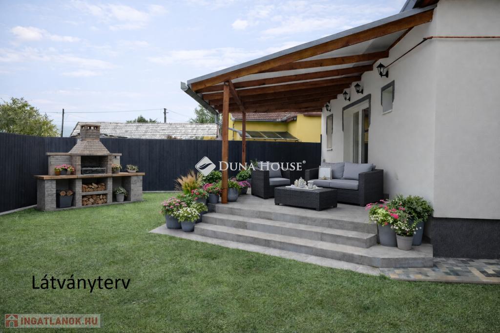 Ez az ingatlan ideális választás olyan családok részére akik szabadidejüket nem a nagy kert gondozásával szeretnék tölteni!