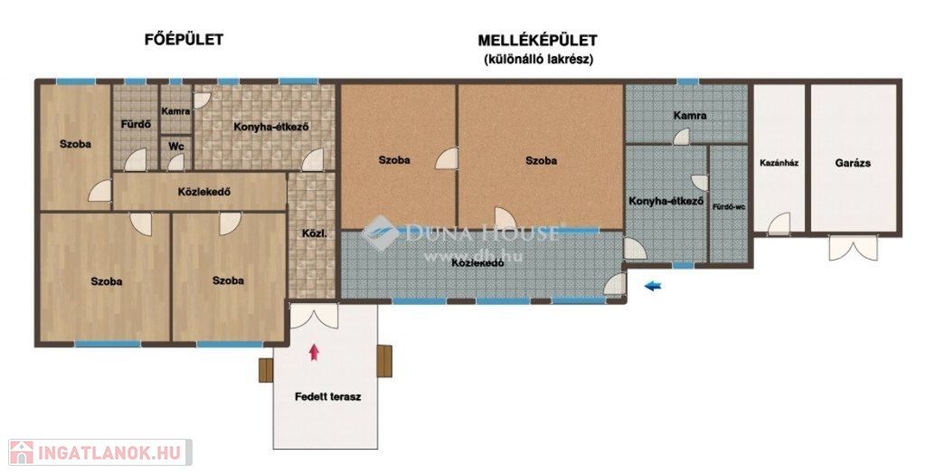 - FŐÉPÜLET: 102 nm-es, tégla szerkezetű, 3 szobás főépület, ami egy gondos gazda keze alatt folyamatosan karbantartott volt.