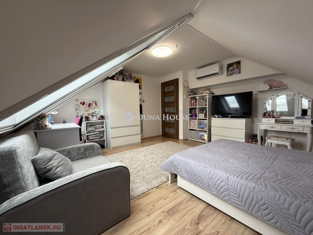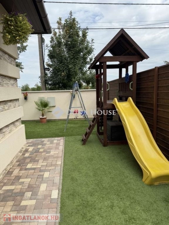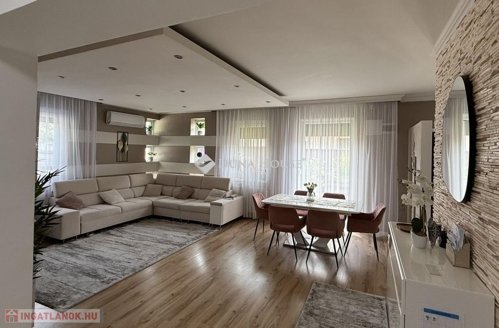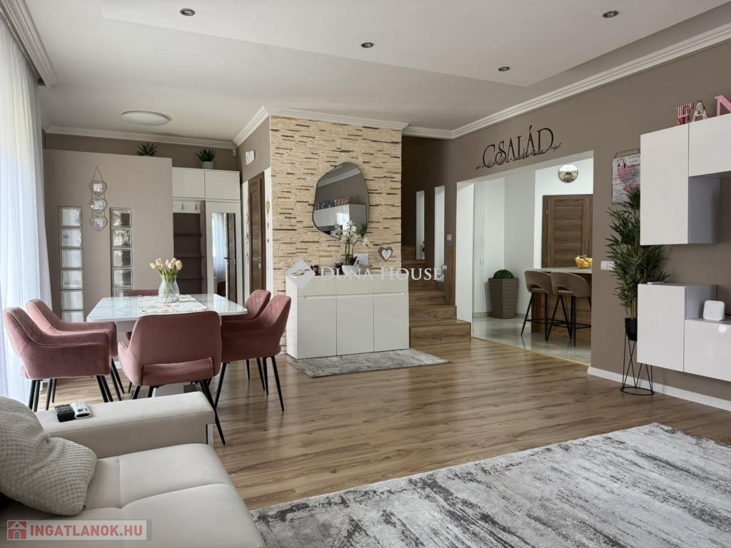 Az ingatlan 2005-ben épült, 131 négyzetméteren kínál tágas, kényelmes életteret amerikai-konyhás nappalival + 4 szobával (1 szoba a földszinten, 3 szoba az emeleten található).