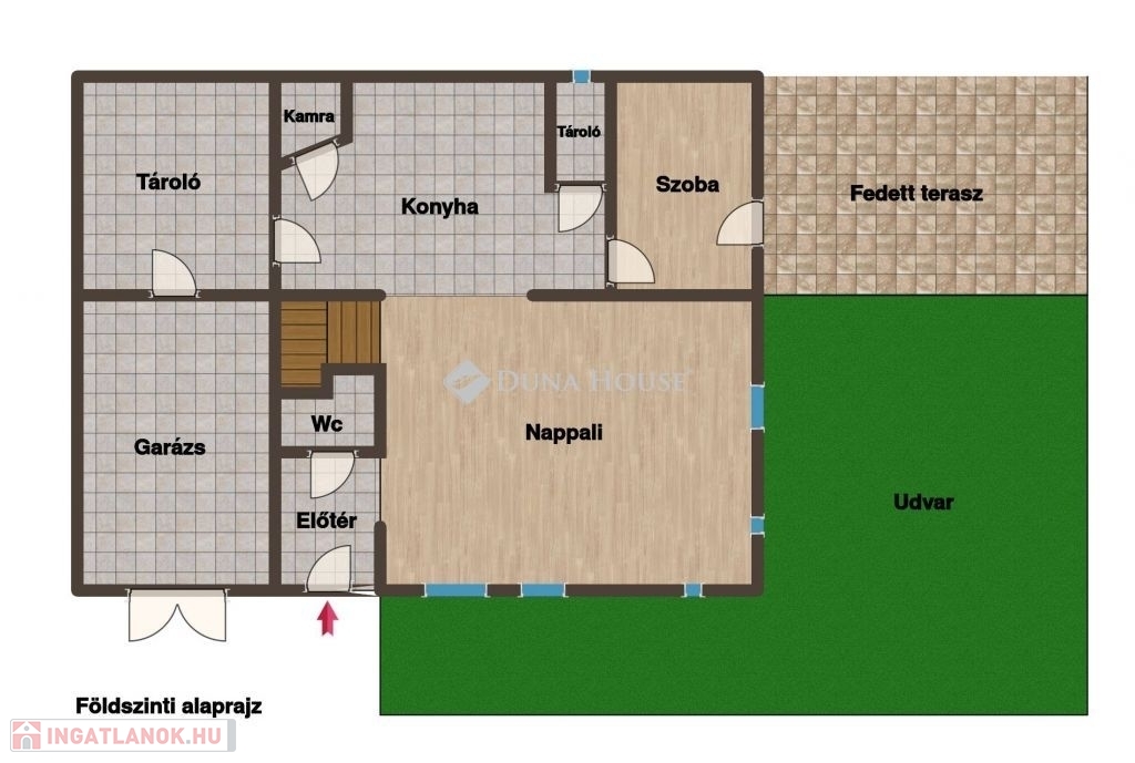 A lakóingatlan különlegességét többek között a fedett terasz adja, amely tökéletes helyszíne lehet a baráti, családi összejöveteleknek.