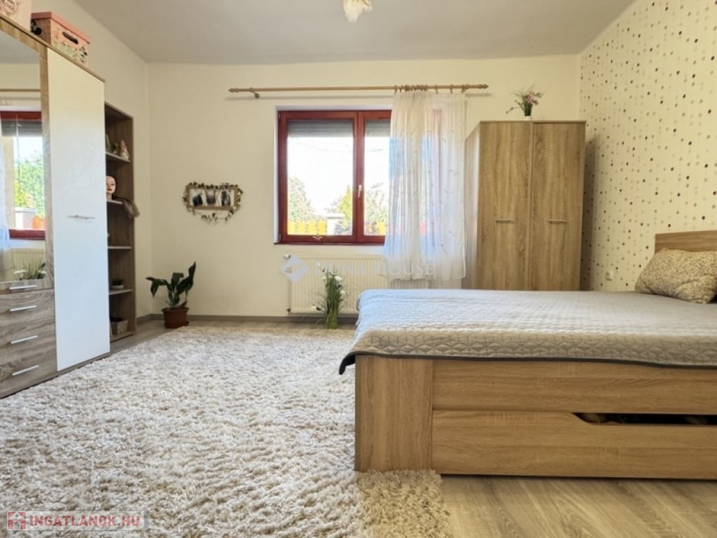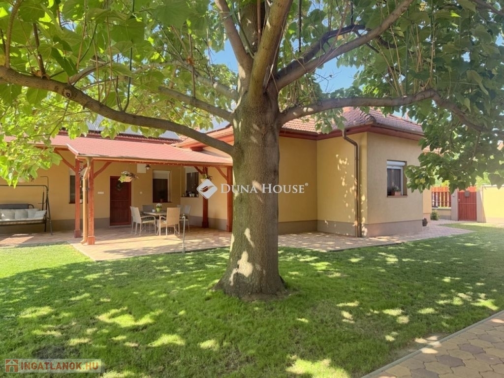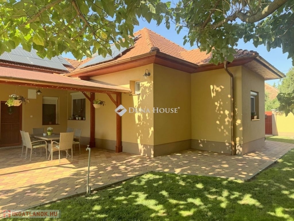 TELJESEN FELÚJÍTOTT, KIFOGÁSTALAN MINŐSÉGŰ CSALÁDI HÁZ ÁLOMSZÉP KIALAKÍTÁSSAL ÉS ALACSONY FENNTARTÁSI KÖLTSÉGGEL!Eladó egy tágas 133 m²-es, teljeskörűen felújított családi ház, amely minden kényelmi igényt kielégít!A három hálószoba, a hatalmas nappali és a kényelmes étkező-konyha tökéletes elrendezést biztosít családosoknak vagy tágas térre vágyó pároknak is egyaránt.Lakótér: 133 m² - kényelmes, nagy terek, praktikus elrendezés.Telek: 744 m² - pont ideális és élhető méret, könnyen gondozható, de minden elfér rajta amire szüksége van.Műszaki tartalom:- 6,5 kWp napelem rendszer az éves villanyszámlát lenullázza!- Kombi gázkazán lapradiátorokkal+vegyestüzelésű kazán többféle fűtési lehetőség.- 2 db hűtő-fűtő klíma hűvös otthon nyáron is.- 10 cm kőzetgyapot szigetelés, Baumit nemesvakolattal alacsony fűtési költségek.- Hőszigetelt fa nyílászárók igényes, esztétikus megjelenés.- Villany-; víz- és szennyvízvezetékek teljes cseréje.- Új tetőszerkezet, cserép és ereszcsatorna.Kiemelkedő jellemzők:- Hatalmas fedett terasz a baráti összejövetelekhez.- Füvesített játéktér gyerekeknek, árnyékot adó nagy lombos fával.- Kétállásos garázs és külön hátsó terasz ideális akár jakuzzi számára!- Térkövezett udvar már nem kell a burkolattal bajlódni!Amennyiben az Ön elvárása is egy valóban kész, igényes és hosszú távon gazdaságosan fenntartható családi otthon, kérem, keressen bizalommal további részletekért és a megtekintés egyeztetése céljából.
