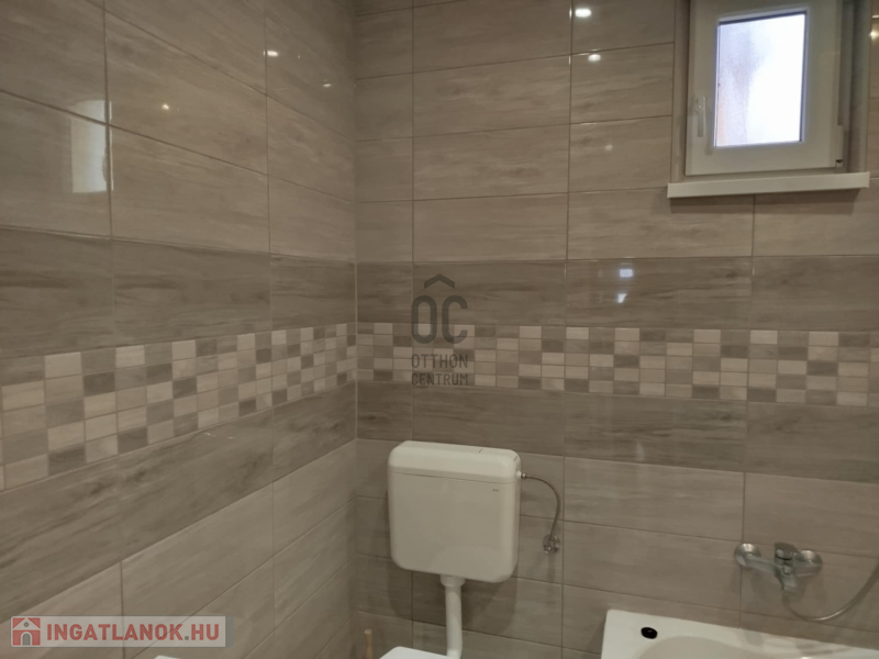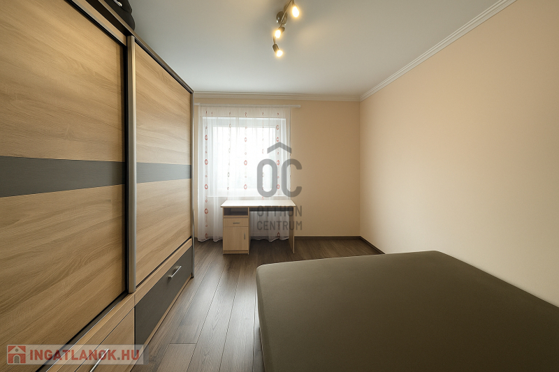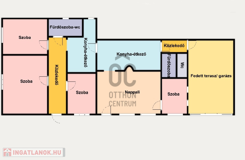 A belső elrendezés: 3 szoba, konyha-étkező, fürdőszoba WC-vel, közlekedő.