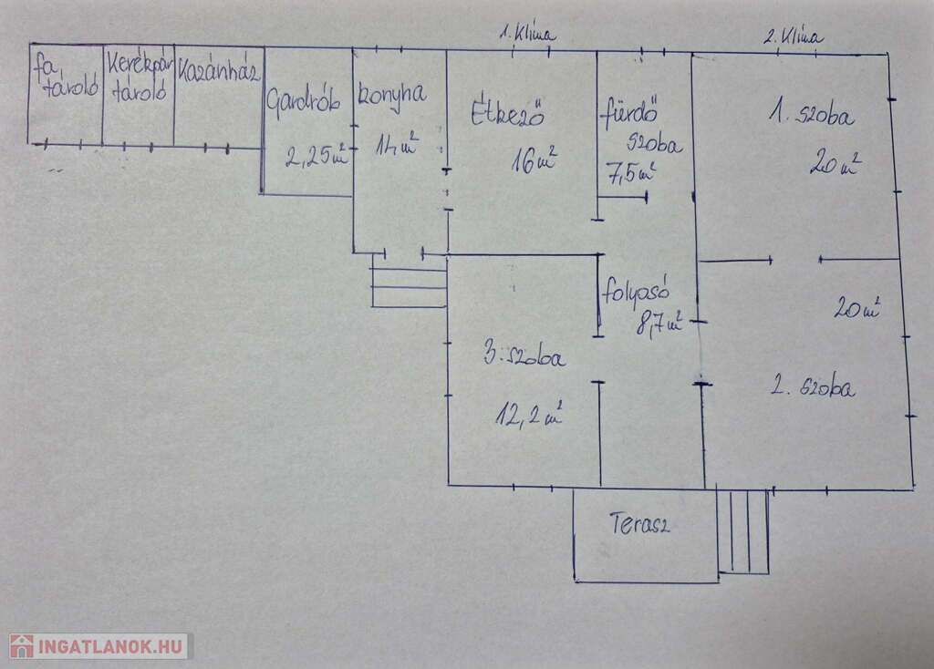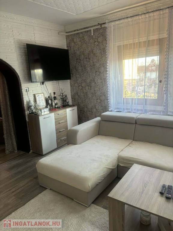 Helyiségek: konyha, étkező, fürdőszoba+wc, 3 szoba (amelyből az egyik nappaliként funkcionál), folyosó, gardrób,