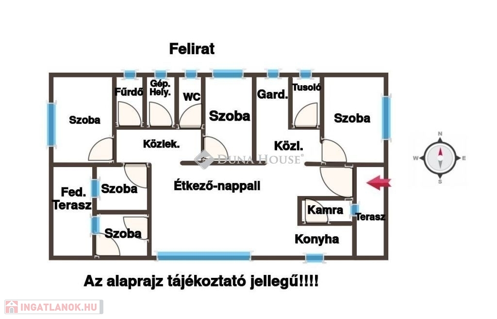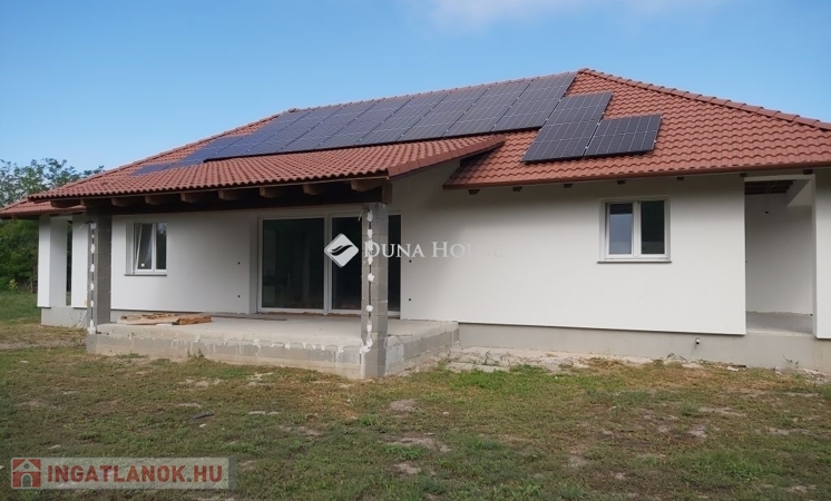 BESNYŐ CSENDES, ÚJ UTCÁJÁBAN LEHETŐSÉGEKBEN GAZDAG, ÚJ ÉPÍTÉSŰ CSALÁDI HÁZ ELADÓ!Az ingatlan Besnyőn található, Fejér megyében, Budapest és Dunaújváros között félúton. A település kiváló elhelyezkedésének köszönhetően gyorsan megközelíthető az M6-os autópályán keresztül, így mind a főváros, mind Székesfehérvár elérése kényelmes. Nyugodt, családias környezet, mégis közel a nagyvárosi lehetőségekhez.A település központjához közel, nyugodt lakóövezetben kínálunk megvételre egy nettó 189 m²-es , egyszintes családi házat, amelynek belső befejezése az új tulajdonos elképzeléseire vár. Igény esetén az eladó segítséget nyújt a kulcsrakész állapot elérésében is.Az ingatlant saját részre, egyedi tervek és átgondolt koncepció alapján építették.Műszaki jellemzők:Beton sávalapra épült, 30-as kerámia falazattal, kívülről 15 cm grafitos szigeteléssel.Fa födém, 35 cm kőzetgyapot szigeteléssel.Kontyolt nyeregtető, barna Bramac cserépfedéssel.Fűtés: hőszivattyús rendszer, padlófűtéssel.Napelem rendszer előkészítve.Közművek: villany, víz, csatorna (gáz nincs).Nyílászárók: modern műanyag szerkezetek.Belső elrendezés:ElőtérTágas nappaliétkezőkonyha, kamrával5 szoba (gardróbos hálószoba + teraszos szoba)2 fürdőszoba, külön WCHáztartási helyiség22 m²-es terasz és fedett előteraszEz a ház ideális választás azoknak, akik csendes, falusias környezetben, mégis kiváló közlekedési lehetőségekkel szeretnének élni. A tágas belső terek, a magas műszaki színvonal és a nagy, szeparált telek mind hozzájárulnak ahhoz, hogy valódi otthonra találjon benne új tulajdonosa.Amennyiben felkeltette érdeklődését, keressen bizalommal a hét bármely napján telefonon vagy e-mailben!Irodánk teljes körű ügyintézést kínál:díjmentes hitelügyintézés,kedvezményes jogi tanácsadás,ingatlan értékbecslés,Keressen bizalommal a hét minden napján.