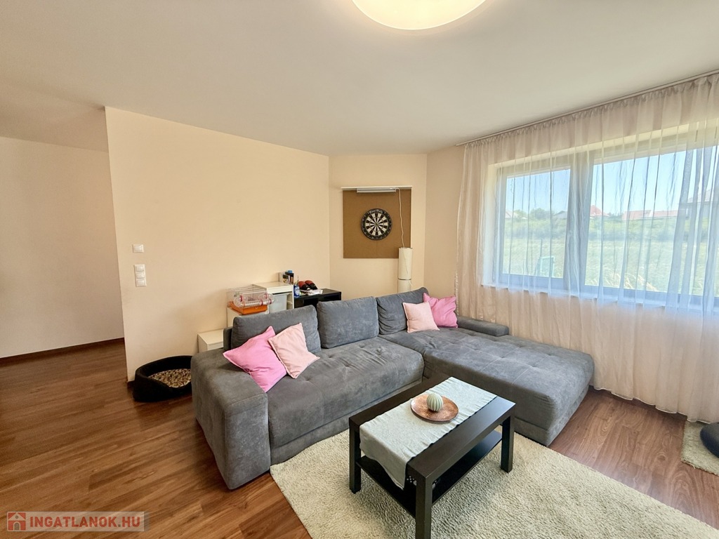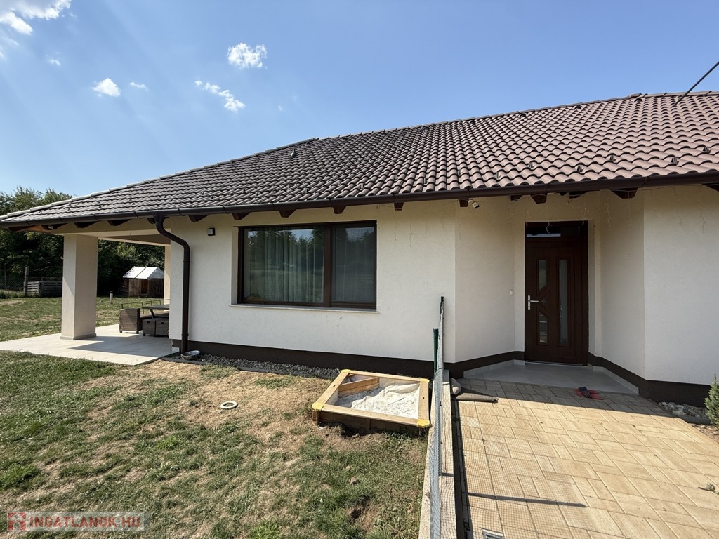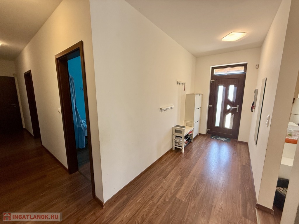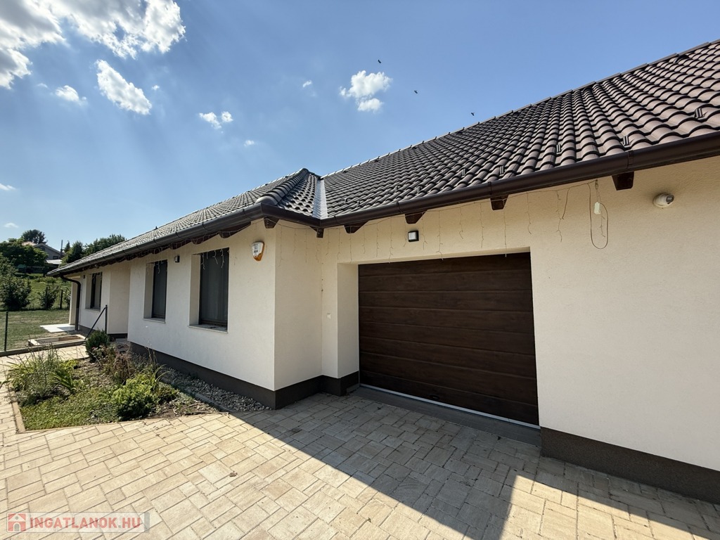 Eladásra kínálunk egy 2021-ben épült, szinte új ikerházat, amelynél a szomszédokkal csak a garázsnál érnek össze a falak – így valódi családi ház érzetet nyújt.