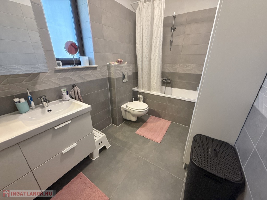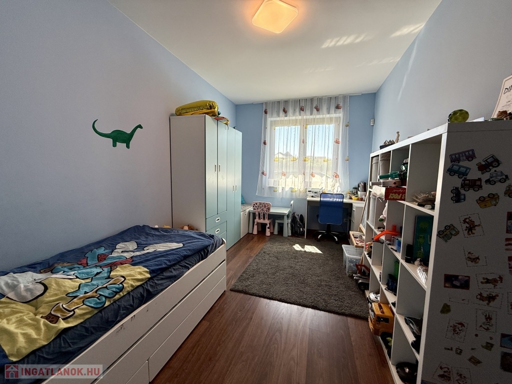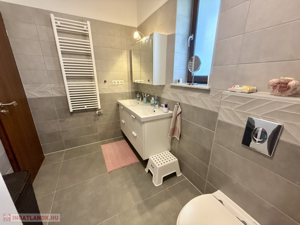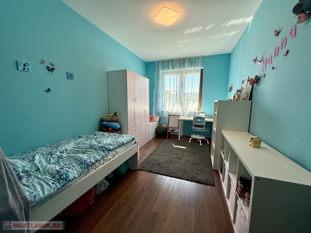 Eladásra kínálunk egy 2021-ben épült, szinte új ikerházat, amelynél a szomszédokkal csak a garázsnál érnek össze a falak – így valódi családi ház érzetet nyújt.