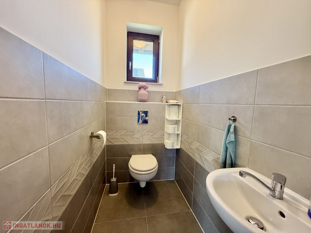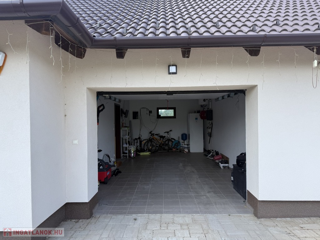 A kényelemről hőszivattyús rendszer, padló- és mennyezet fűtés-hűtéssel, valamint minden helyiségben elektromos redőny gondoskodik. A biztonságot távfelügyeletes riasztórendszer és kamerák biztosítják. A 27 m²-es, egyállásos garázs pedig valódi kincs: tágas és praktikus.