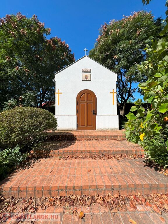 Az ingatlan igazi éke a fák között megbújó kis kápolna színes üvegablakaival, amely tökéletes helyet kínál csendes elmélyüléshez vagy meghitt pillanatok megéléséhez. A házhoz továbbá tartozik egy mellette fekvő, körülbelül egyhektáros terület is, amely jelenleg nincs körbekerítve, valamint egy aszfaltozott buszforduló, amely közvetlenül a telek előtt található, így kényelmes megközelíthetőséget biztosít.