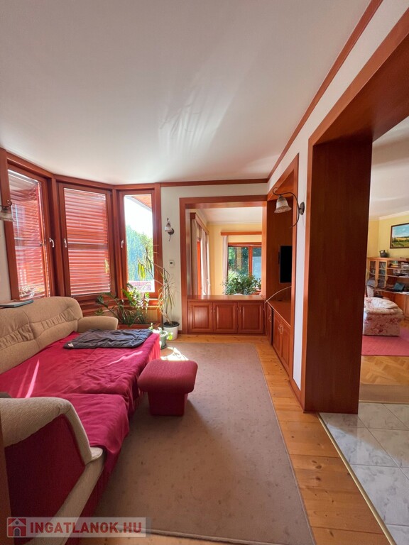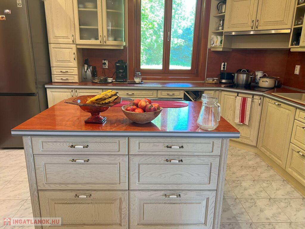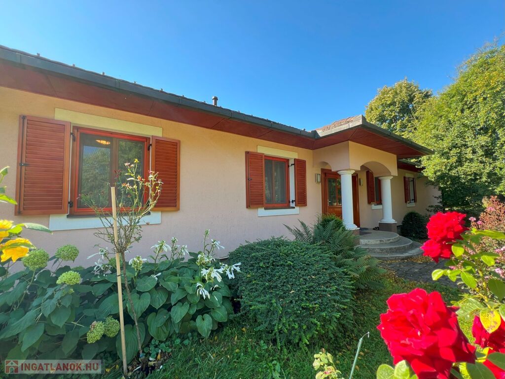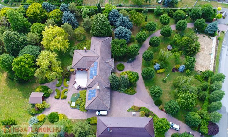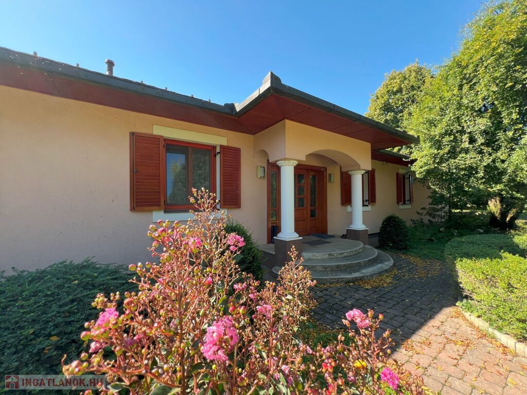 Az ingatlan jellemzői: A főépület a kilencvenes évek elején épült téglából, masszív betonfödémmel és cseréptetővel, amely beépíthető tetőtérrel további bővítési lehetőséget kínál. A 190 négyzetméteres otthon központi tere a tágas, déli tájolású nappali hatalmas üvegfelületekkel, amely közvetlen kapcsolatban áll a nagy terasszal, ahonnan a kert panorámája tárul elénk. A nappaliból egy szinteltolással nyíló konyha, hálószobák, gardrób és fürdőszobák érhetők el, a fürdő egyik különlegessége egy infraszauna. Az épület 10 cm homlokzati és 40 cm födém hőszigeteléssel rendelkezik, valamint fa nyílászárókkal dupla üvegezéssel van felszerelve.