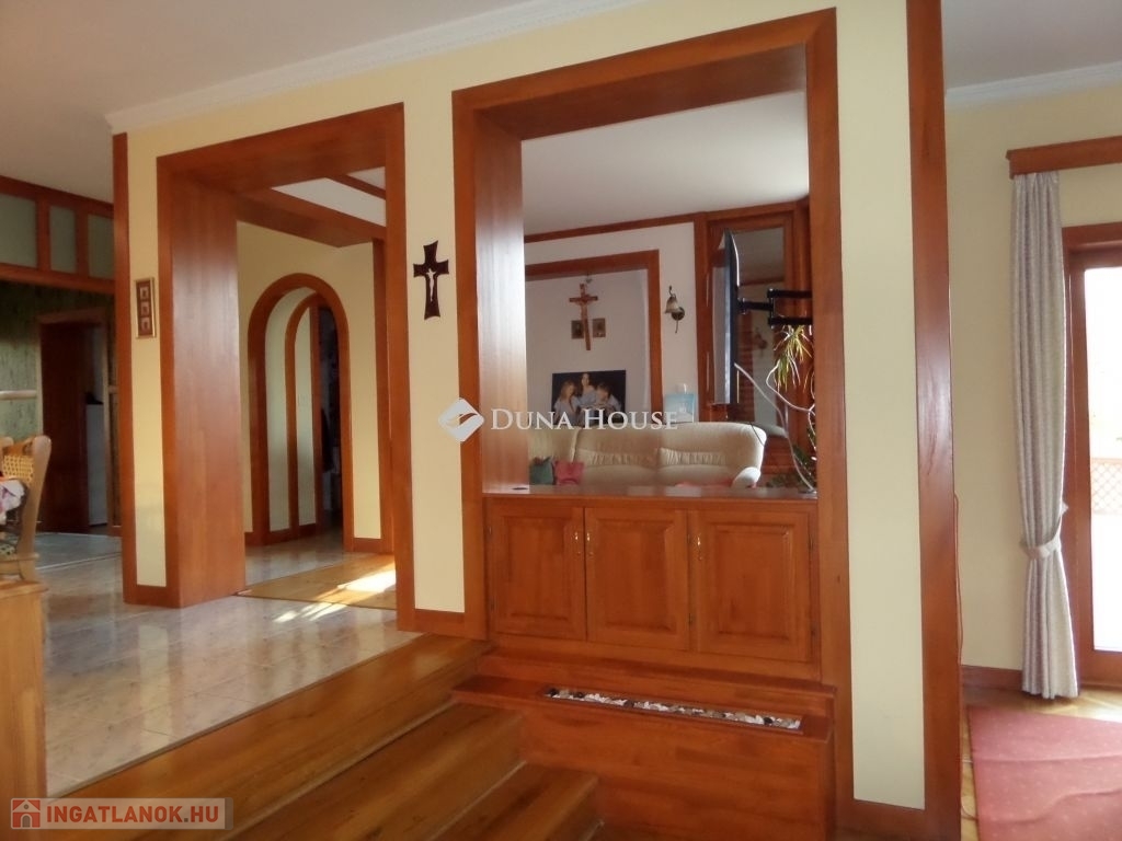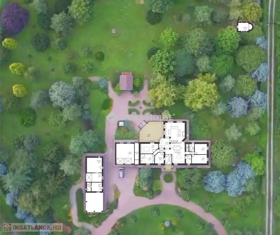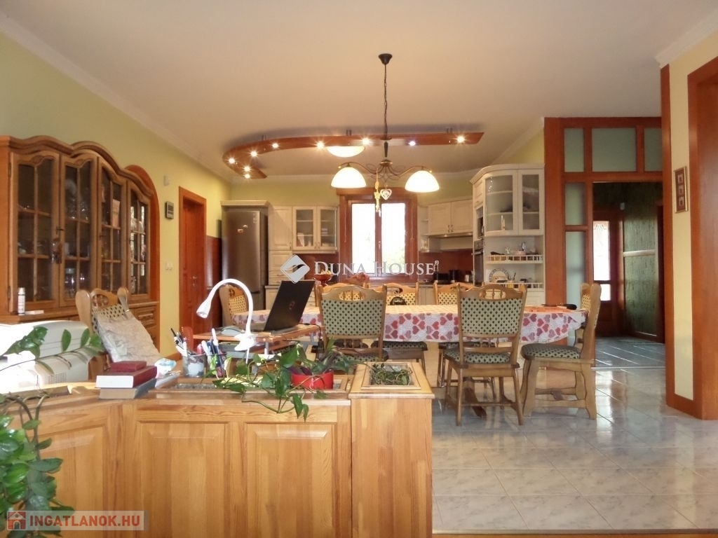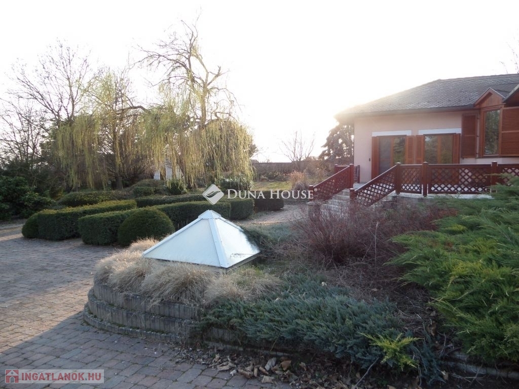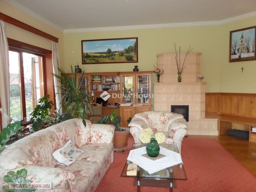 Baranya megyében, Pécstől 16 km re fekvő Birján településen eladó egy nem mindennapi élményt nyújtó arborétum-kert a benne található lakóházzal, melléképületekkel.A bírtok 15.000 m2-en terül el, a tulajdonos 30 éve folyamatosan telepíti a növényzetet, jelenleg kb 486 féle faj, köztük díszfák, örökzöldek, cserjék, évelő virágok és gyümölcsfák találhatók. A házat körbe vevő zöld növényzet különleges mikroklímát biztosít a háznak, így az épület nem igényel hűtést, a legforróbb időszakokban sem. A kertet bio módszerrel ápolják, nem használnak vegyszereket.A terület teljesen körbe van kerítve, a falu felől téglafallal, hátul kerítéssel és sövénnyel. A birtoknak 3 bejárat van, fő és mellék kapu melyek elektromosan nyílnak, valamint gazdasági bejárat. A területen térkövezett utak vezetnek a kaputól az épületekig.A ház 1992-94 között épült prémium minőségben, nettó területe 179m2. központi része a hatalmas konyha-étkező és a vele egybe nyíló, kis szinteltolással kialakított nappali és társalgó. Innen két oldalra nyílik a többi helyiség, a 3 hálószoba, két fürdő, és a nagy gardróbszoba. Az egyik fürdőszobában 3 személyes infraszauna került beépítésre. A nappalihoz kapcsolódik egy 48m2-es terasz is, ahonnan kiváló a kilátás a kertre. Az épület 10 cm homlokzati és 40 cm födém hőszigeteléssel rendelkezik, valamint fa nyílászárókkal dupla üvegezéssel van felszerelve.A ház mellett több melléképület is található, két fedett kocsi beálló, kettő garázs, kazánház, nagy tároló helyiségek.Az ingatlan egyedi és különleges gépészettel rendelkezik, benne a gépészmérnök tulajdonos által fejlesztett megoldásokkal. A fűtést több rendszerről is üzemeltetni lehet. Egyrészt van egy vegyes tüzelésű, egyedileg fejlesztett kazán, melyet a kert zöld hulladéka teljesen el tud látni tüzelővel. Ezen kívül gázcirkó kazán, hőszivattyú, a nappaliban épített cserépkályha, valamint hűtő-fűtő klímákkal is megoldható a fűtés, melyeket a 4,5 KW-os napelemek is el tudnak látni árammal. A ház rezsije minimális költséggel fenntartható.A kert gondozásához rendelkezésre áll egy ásott és egy 40 mély fúrt kút, valamint egy 50 nm-es ciszterna, melyből az öntöző rendszeren keresztül folyamatosan biztosított a növények vízellátása.A kert egyik sarkában kis kápolna kapott helyet egyedileg épített haranglábbal. A ház nagycsalád részére is és többféle vállalkozás céljára is kiváló lehetőség.További információkért, megtekintéssel kapcsolatban keressen bizalommal.