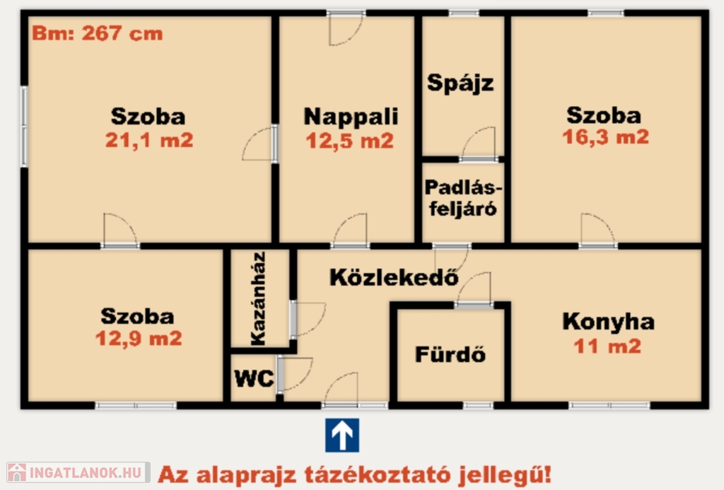 A lakótér elrendezése: nappali, három hálószoba, konyha, spájz, padlásfeljáró, kazánház, közlekedő, fürdőszoba és külön WC található benne. A mindennapi használatot és a gazdálkodást egy 20 m2-es műhely és egy istálló épület segíti. A vízellátást 2 db fúrt kút szolgálja, hidrofor rendszerrel.