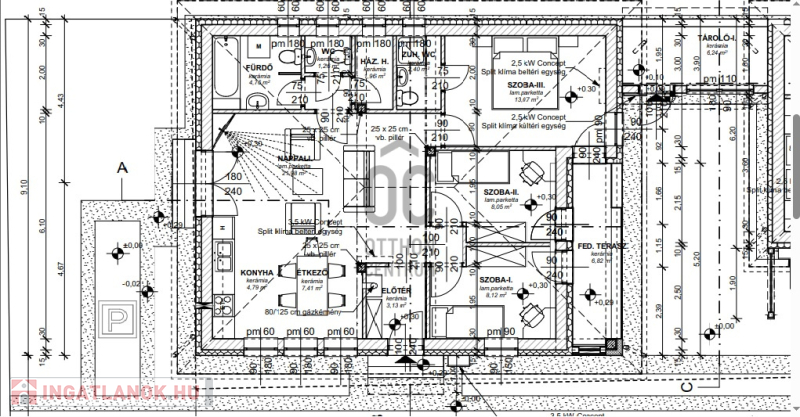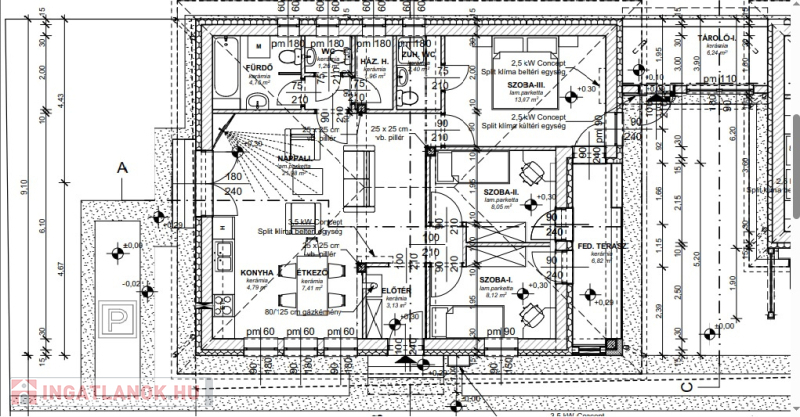 -Nappali-amerikai konyha + 3 külön nyíló szoba