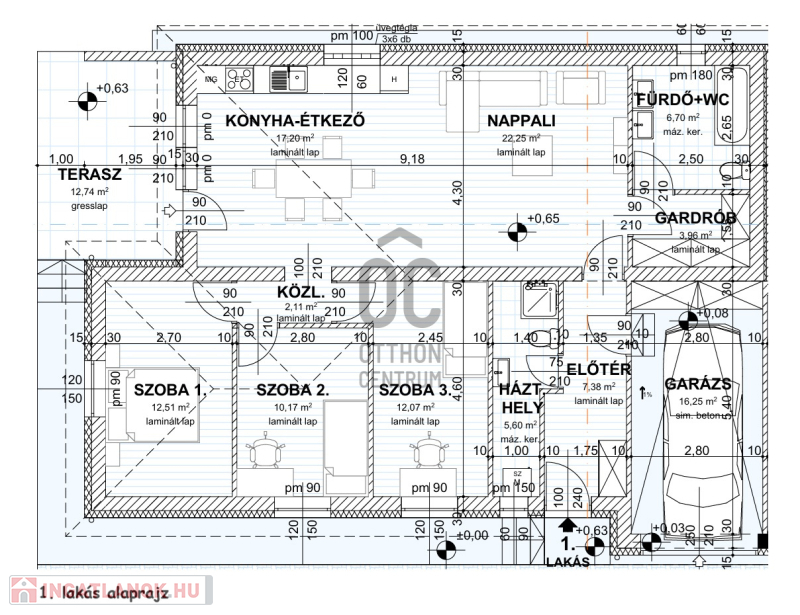 - amerikaikonyhás nappali (40 nm) teraszkapcsolattal