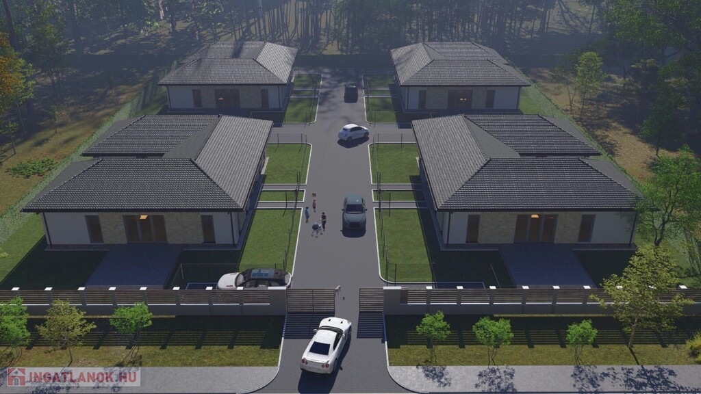 A 24 lakásos, barátságos lakóparkban található földszintes, kertkapcsolatos ikerház 90 m²-en kínál praktikus, tágas életteret, ahol a modern kivitelezés, a természet közelsége és a mindennapi kényelem harmonikus egységet alkot.
