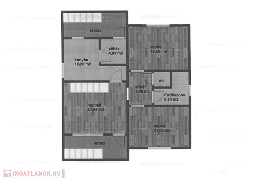 2 terasz, 2 erkély, 2 garázs, melléképület
