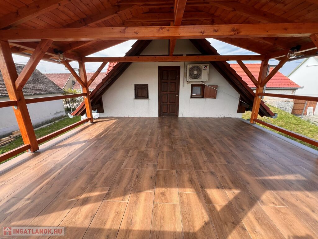 Az ingatlan jellemzői: Az ingatlan 2000-ben épült téglából, és azóta gondosan karbantartották, felújították, így jelenleg tökéletes állapotban várja új tulajdonosát. A ház összesen 80 m² alapterületű. A földszinten egy előszoba fogad, innen nyílik a konyha étkezővel, valamint a fürdőszoba. Innen érhető el a hangulatos, klasszikus, téglaboltíves pincelyuk is. Az emeleti szinten három szoba, egy külön WC, valamint egy igazán különleges, 32 m²-es tágas terasz található. Ez az ingatlan egyik ékköve, ahonnan gyönyörű kilátás nyílik a környékre, és ideális helyszíne lehet a reggeli kávézásoknak vagy baráti beszélgetéseknek.