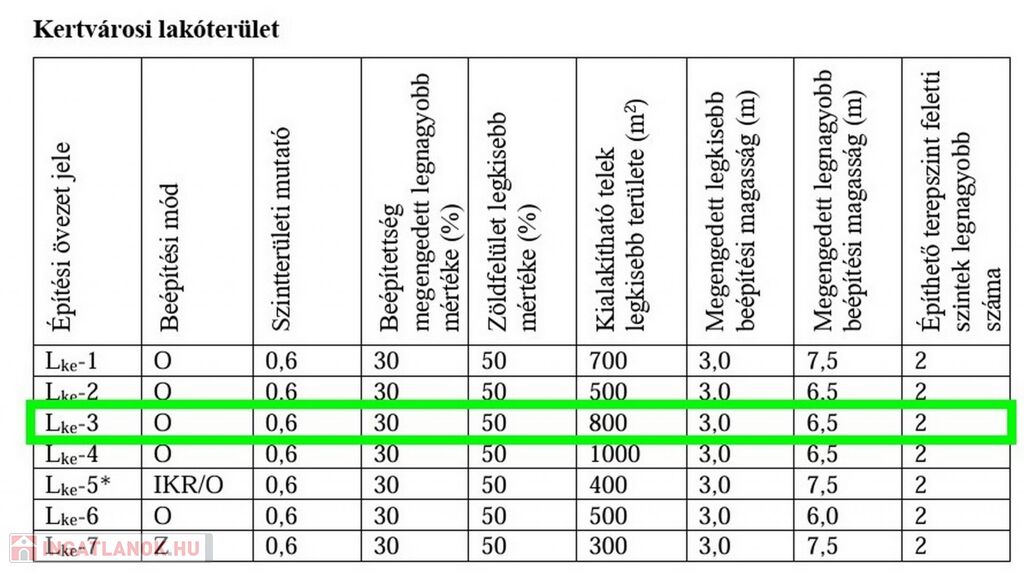 Az ingatlan 30%-ban beépíthető övezetben található, így hosszabb távon kiváló fejlesztési lehetőséget is rejt magában.