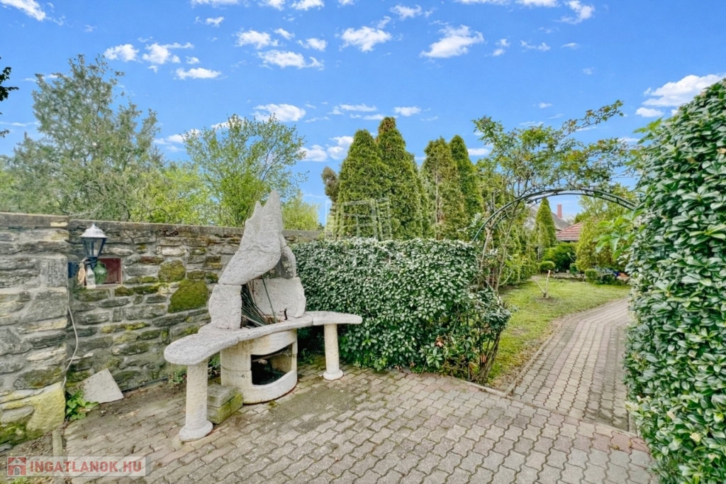 Az ingatlan lakóterülete 290 m2, és kétlakásos kialakításának köszönhetően ideális nagycsaládok, több generáció együttélésére, vagy akár vendégházzal kombinált nyaralóként is kiválóan hasznosítható. A házhoz tartozik egy kerti medence, egy dupla garázs, valamint egy különálló faház, amely kiválóan alkalmas tárolásra vagy raktárként.