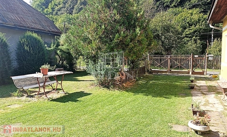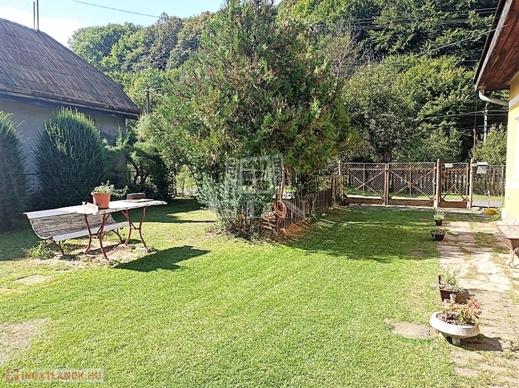 A hangulatos, teljesen bekerített udvar gondozott, füvesített, zöld gyeppel, virágokkal, illetve direkt kertkapcsolattal bír a veteményes-kertre, a terület végén kis patak fut az erdő előtt.