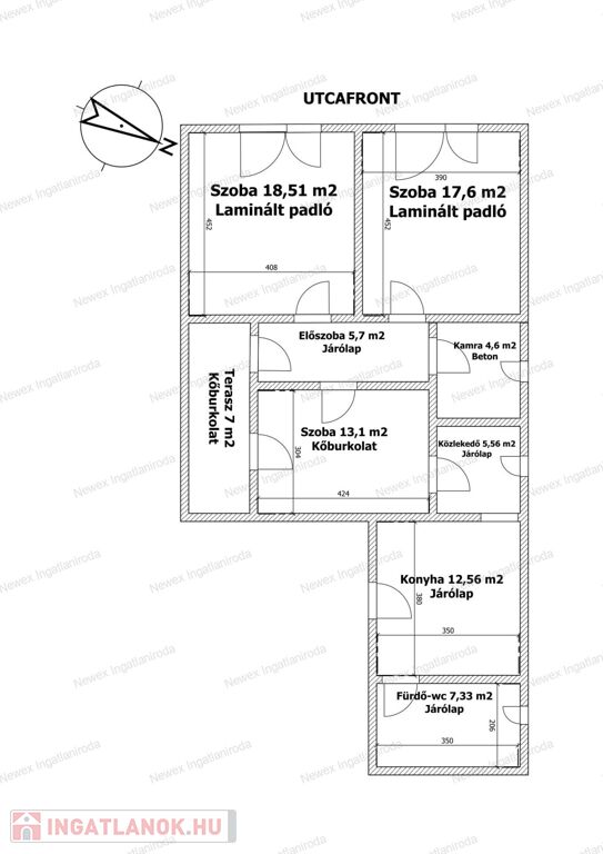 Az ingatlan elosztása átgondolt és praktikus: három szoba, előszoba, kamra és közlekedő biztosítja a kényelmes mindennapokat. A ház eredetileg klasszikus „kádár kocka” típusú épületként épült, amelyet később bővítettek, így alakították ki a tágas konyhát, fürdőszobát WC-vel, pincét és tárolót.