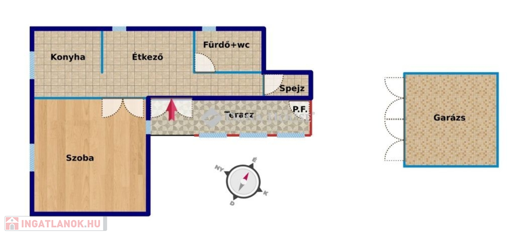A belső terek jó elosztásúak, igény esetén könnyedén kialakítható még egy hálószoba.