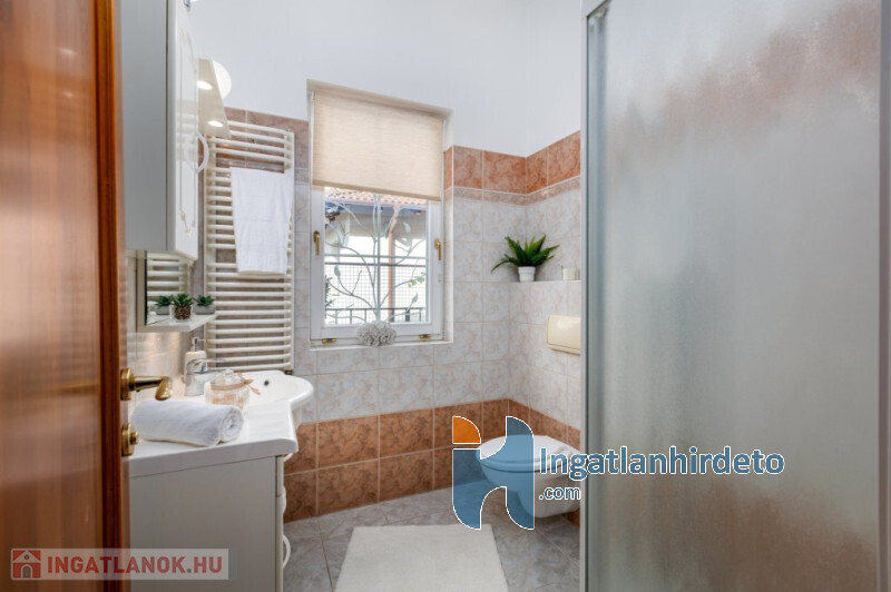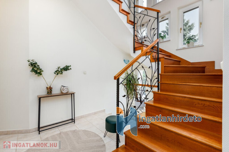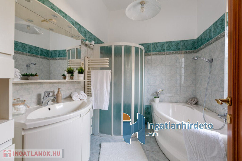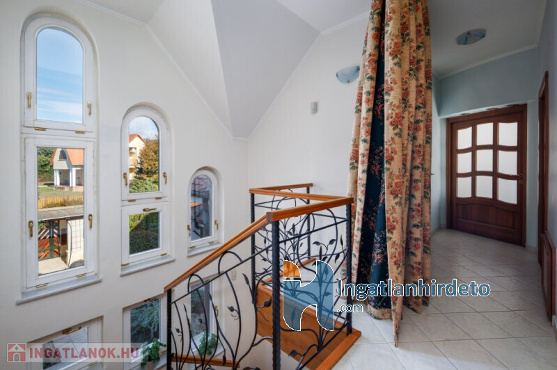 Elhelyezkedése: Belterület Tájolása: Dél-nyugai tájolású Állapota: Használt - felújított Komfort besorolása: Luxus komfortos Építési éve: 2001 Alapterülete: 334 m2 Telekterülete: 868 m2 Szobák száma: 4 + 3 szoba Felújított: Felújított Felújítás éve: 2016 Közművek: Gáz, Víz, Villany, Csatorna Fűtés módja: Gáz, Fa Fűtés típusa: Kandalló, Napkollektor, Padlófűtés Homlokzat állapot: Újszerű Építési mód: Tégla Tető formája: Magas Tető anyaga: Cserép Parkolási lehetőség: Garázsban Kilátás: Udvari kilátás, Tóra nyíló kilátás Napelem: Van Teljesítmény(kW): 1,5 Jellemzői: Alacsony rezsi, Csendes környék, Jó közlekedés, Két bejárat, Ikergarázs, Légkondicionáló, Étkező, Udvari terasz, Beépíthető tetőtér, Beépített szekrény, Beépített konyhabútor, Kert, Kerítés, Ipari áram, Riasztó, Parketta burkolat, Egyedi vízóra , Zöldterület, Jó közbiztonság Energetikai besorolás: C Egyéb jellemzők: Pince Tv, Internet: Kábeltévé, Internet, Vezetékes telefon Közelben: Iskola, Óvoda, Autóbuszállomás, Orvosi rendelő, Bolt, Gyógyszertár, Postahivatal, Vendéglátó egység Rezsi költség(Ft): 50000 Terhelések: Tehermentes ingatlan Eladásra vonatkozó információk: Azonnal beköltözhető