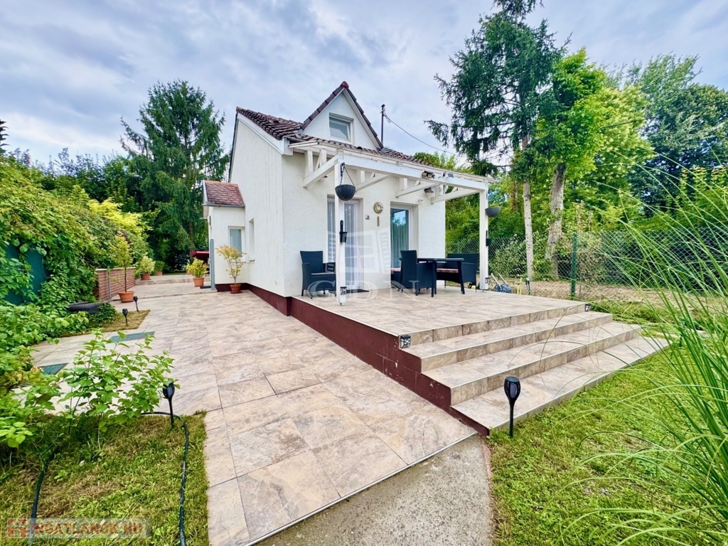 Karnyújtásnyira Bp III. kerületétől, Budakalász üdülőövezetében, (Üh-H) csendes aszfaltozott mellékutcában, közvetlen Dunaparti, 720 nm-es telken 1980-as években, tégla falazattall épült, körbejárható, kétszintes, 72 nm-es hasznos lakóterületű,(alapterület 42 nm) 2 szobás, étkező konyhás, dupla teraszos, (20+50nm) elektromos cirkó fűtésű, napos-világos fekvésű (É-K-D-NY), alacsony fenntartású, 2020-ban, teljes körűen, magas műszaki szinvonalon felújított, szigetelt, klimatizált családi/ház/nyaraló, beépített, gépesített konyhával, 17 nm-es igényesen kialakított, fűthető és zárható téli kerttel, elektromos redőnyökkel, 50 nm-es kerti tárolóval, fúrt kúttal, gondozott kerttel eladó.