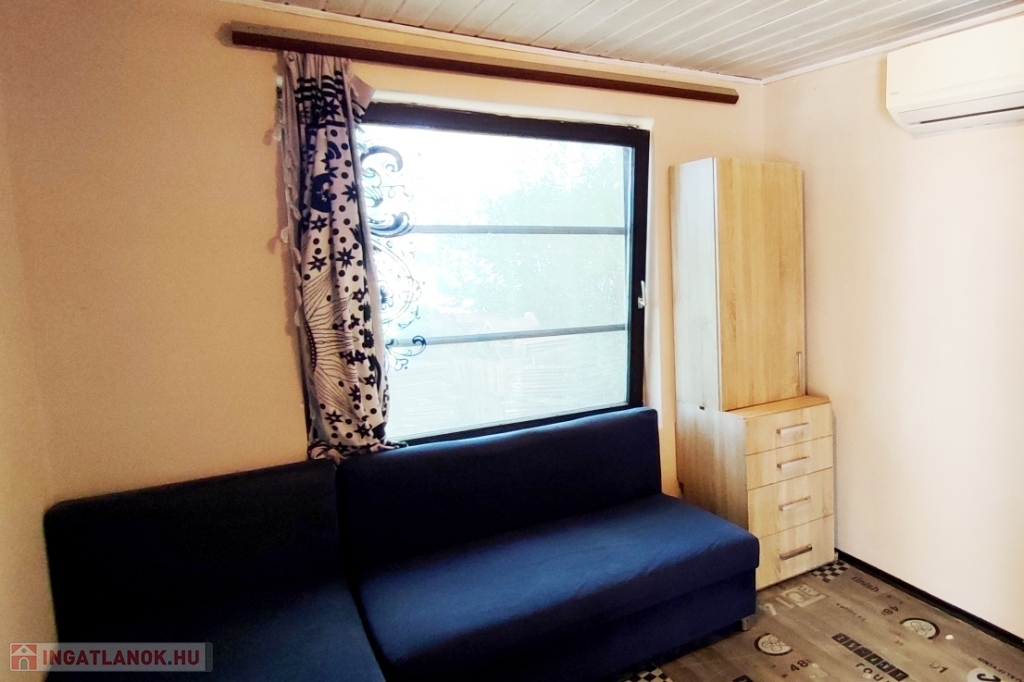 A klímával felszerelt különálló kis ház (18,7 m2) helységei: előszoba, szoba, zuhanykabinos fürdőszoba. Jelenleg dolgozószoba, de akár kiadható vagy használható vendégházként is.