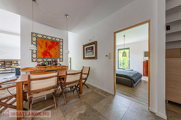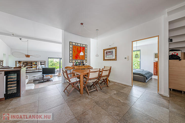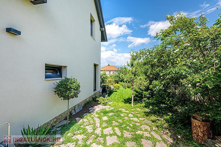 Budakalász kedvelt részén, csupán 15 perces sétára a HÉV megállótól helyezkedik el, így könnyen megközelíthető a város iskolái, óvodái, illetve üzletei egyaránt. A kilátás panorámás, továbbá a nyeles teleknek köszönhetően az intim szférából sincsen hiány. A ház és a kert gyönyörűen karbantartott, többek közt öntözőrendszer is kiépítésre került.