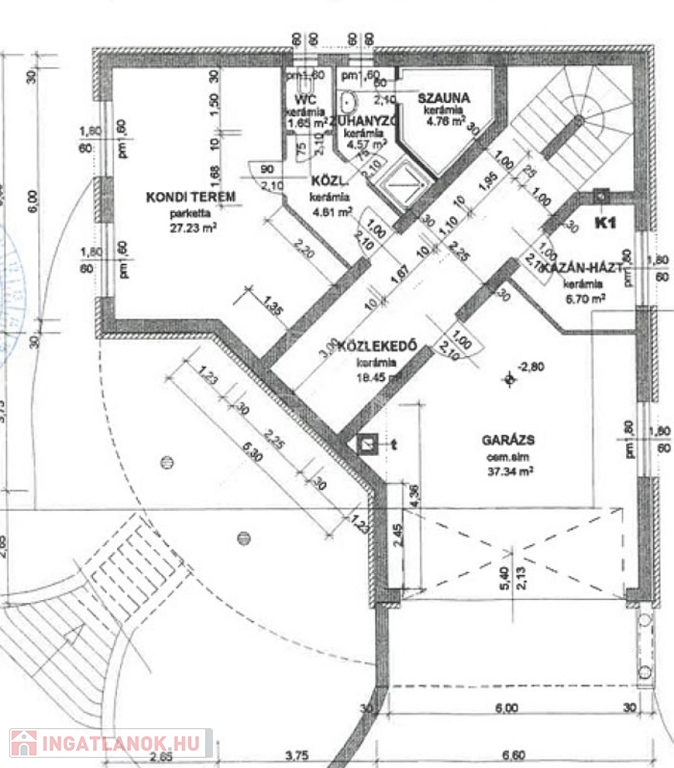 Szuterén és pinceszint: kétállásos fűtött garázs (37 nm), szauna, tágas fitnessz-szoba (27 nm) és tároló