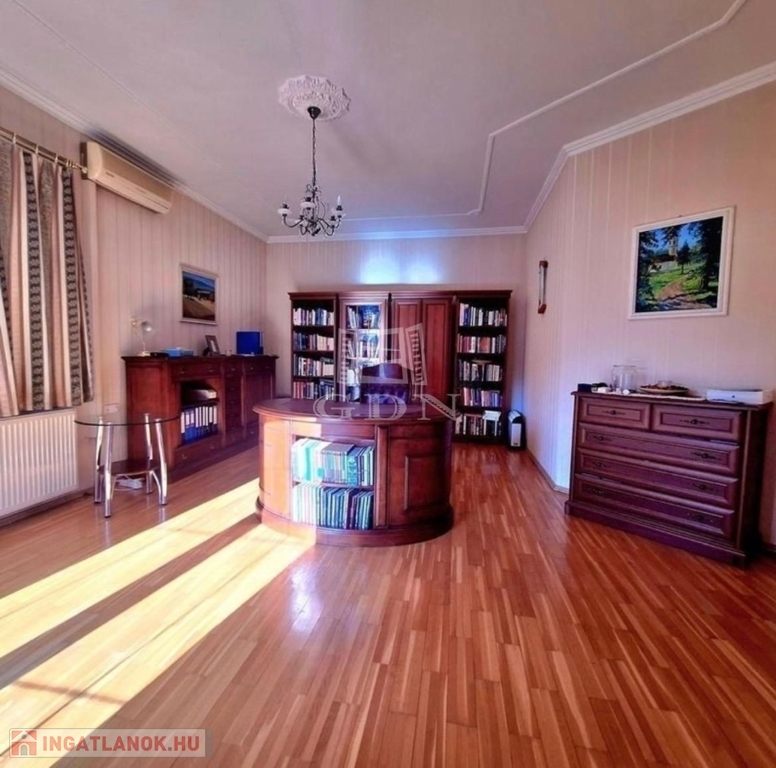 Fűtése: gázkazán, padlófűtés és radiátorok, klíma, elektromos redőnyök, riasztó, automata öntözőrendszer, elektromos kapu.
