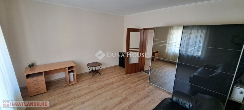 Emeleti lakás: nappali, konyha, étkező, fürdőszoba, 3 hálószoba + 26 nm-es terasz.