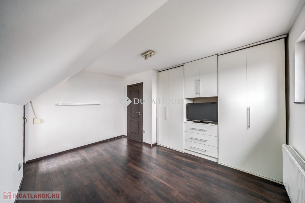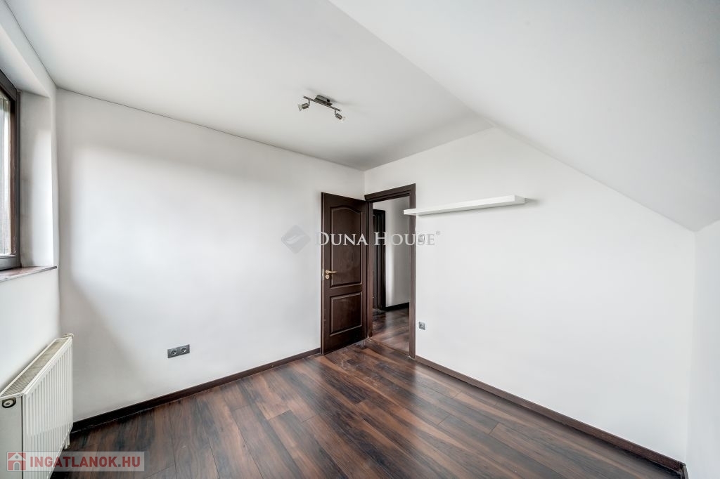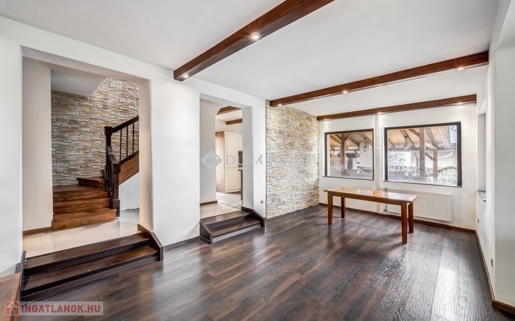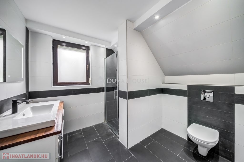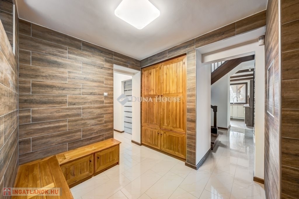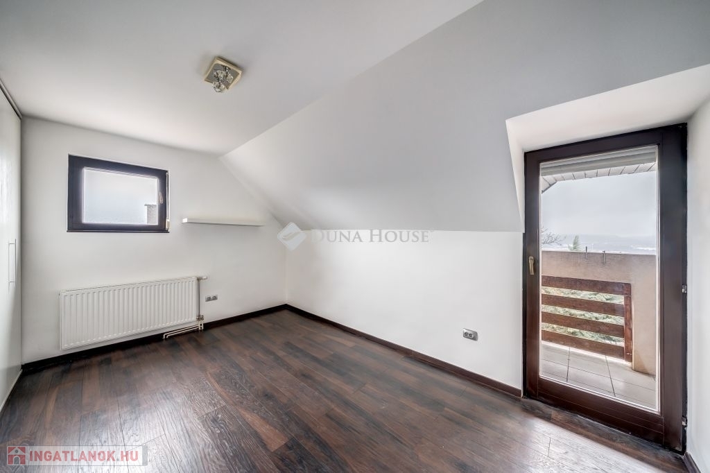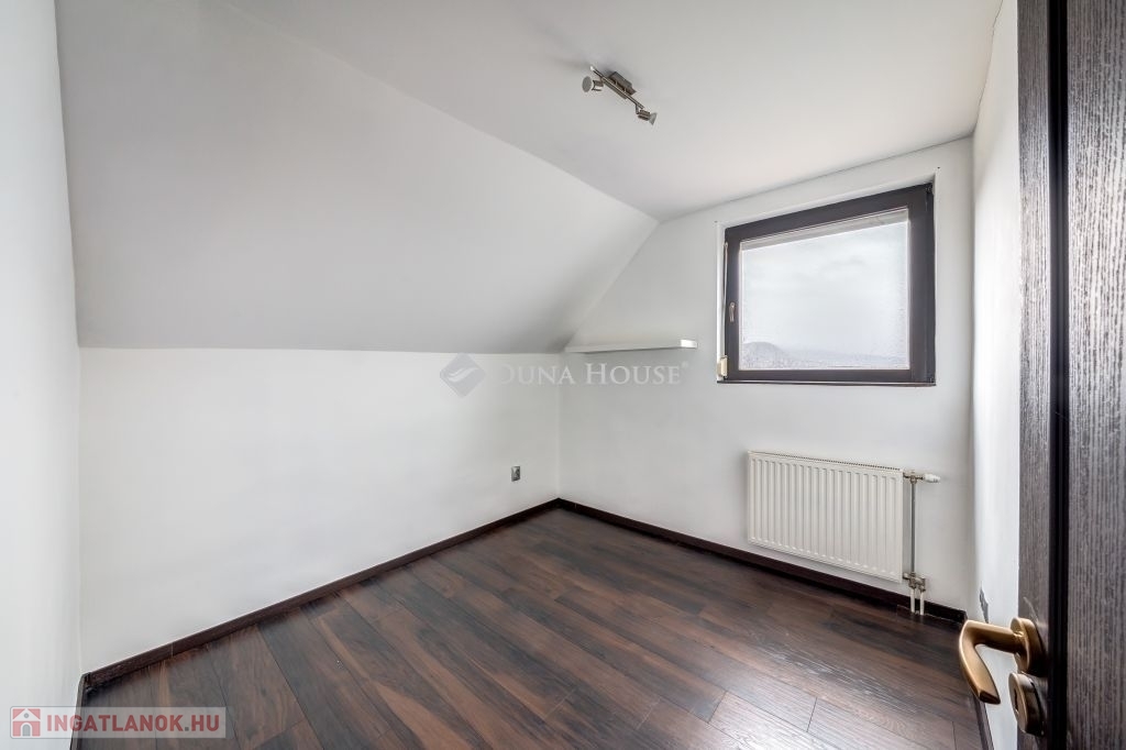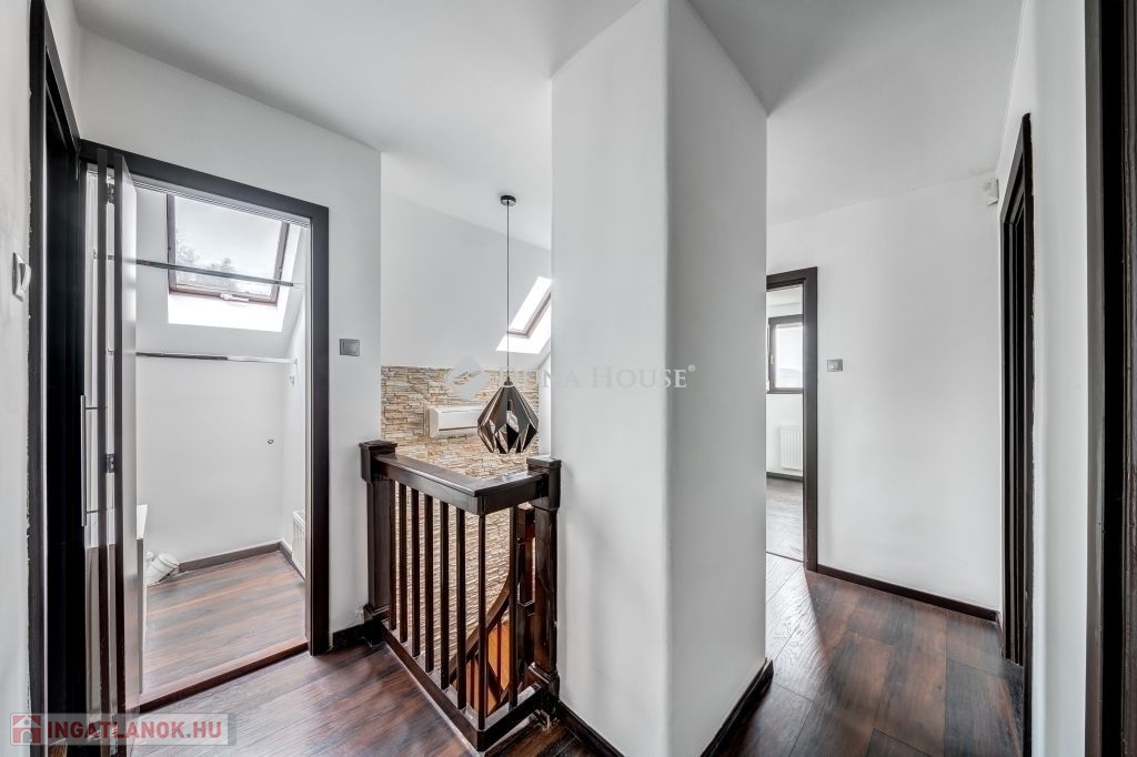 Átgondolt elosztás, élhető terek: a földszinten tágas előszoba fogad, beépített cipős- és akasztós szekrényekkel, bőséges tárolóhellyel. Innen nyílik a külön mosókonyha, háztartási helyiség és a vendég WC. A modern, teljesen gépesített konyha külön helyiségben kapott helyet. A világos, tágas étkező-nappali egy légtérben helyezkedik el, közvetlen kert- és teraszkapcsolattal, amely kellemes életteret biztosít a mindennapokban. Az emeleten három különnyíló, redőnnyel felszerelt hálószoba található, így az ingatlan ideális többgyermekes családok számára is. Két hálószobából erkély nyílik, ahonnan élvezhető a panorámás kilátás. Az egyik szobában 3 méteres beépített szekrény biztosít praktikus tárolást. Ezen a szinten külön gardróbhelyiség és egy kényelmes méretű fürdőszoba szolgálja a család komfortját.