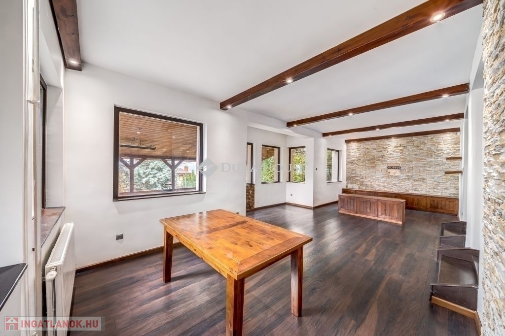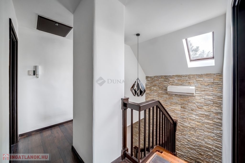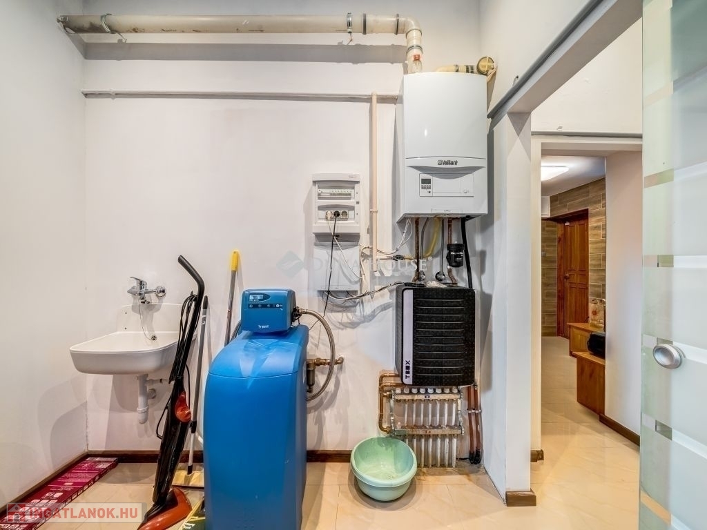 Földszinten padlófűtés, emeleten radiátoros hőleadás, nagyteljesítményű klímaberendezés, riasztórendszer, BWT vízlágyító rendszer, frissen festett belső terek