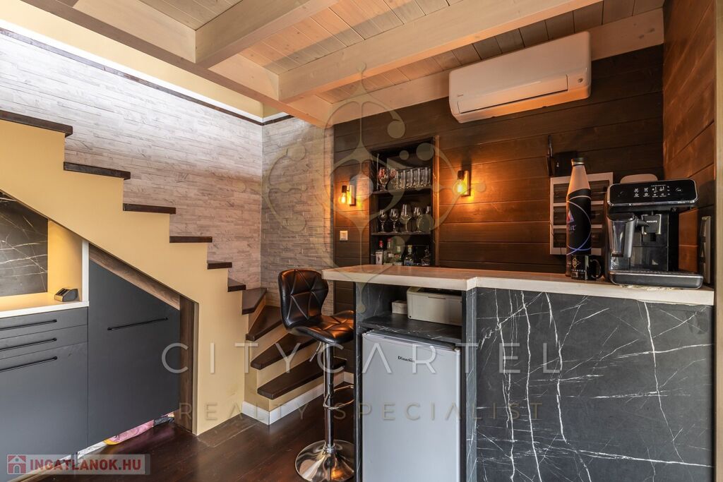 Az 1017 nm-es telken két, különálló, igényesen kialakított épület kapott helyet, valamint egy panorámás épített jacuzzi, hangulatos kültéri sütögető rész és egy tágas, kétállásos garázs.