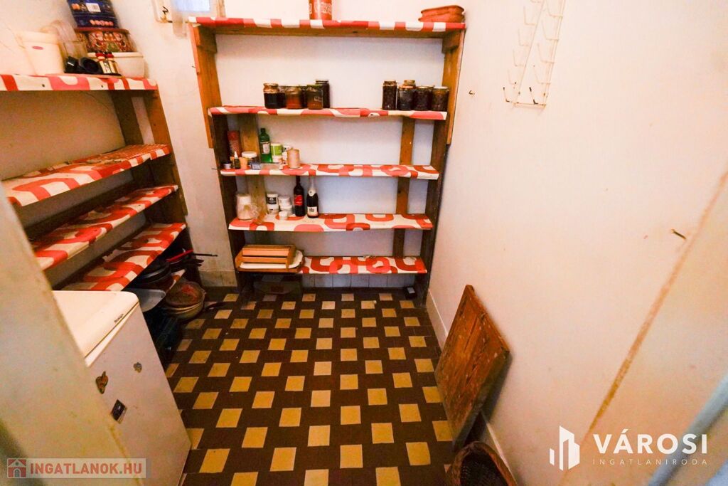 -85nm-es( konyha, fürdőszoba, nappali,lakószoba, előszoba,kamra és egy tároló) 6nm-es terasz, 15nm-es garázs, 4nm-es pince és 20nm-es tároló mellett több kisebb tárolót is találunk