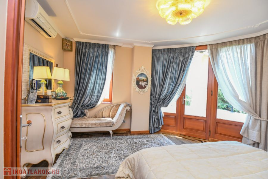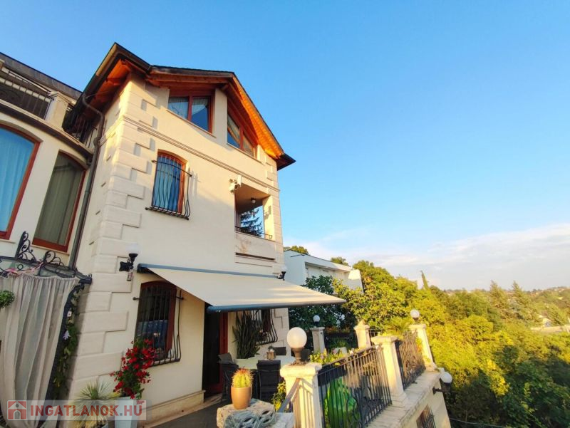 II. Törökvész déli lejtőjén 2010-ben épült 600 m2-es, nappali + 5 szobás, 3 lakószintes, gyönyörű állapotú, klasszikus stílusú, reprezentatív luxusvilla, 860 m2-es ápolt telken eladó.
