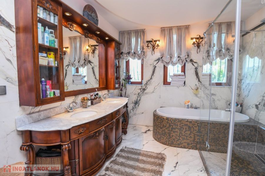 * Tetőtér: 2 szoba (15 és 13 m2), fürdő, 2 gardrobe, közlekedő, padlástér, lift, terasz